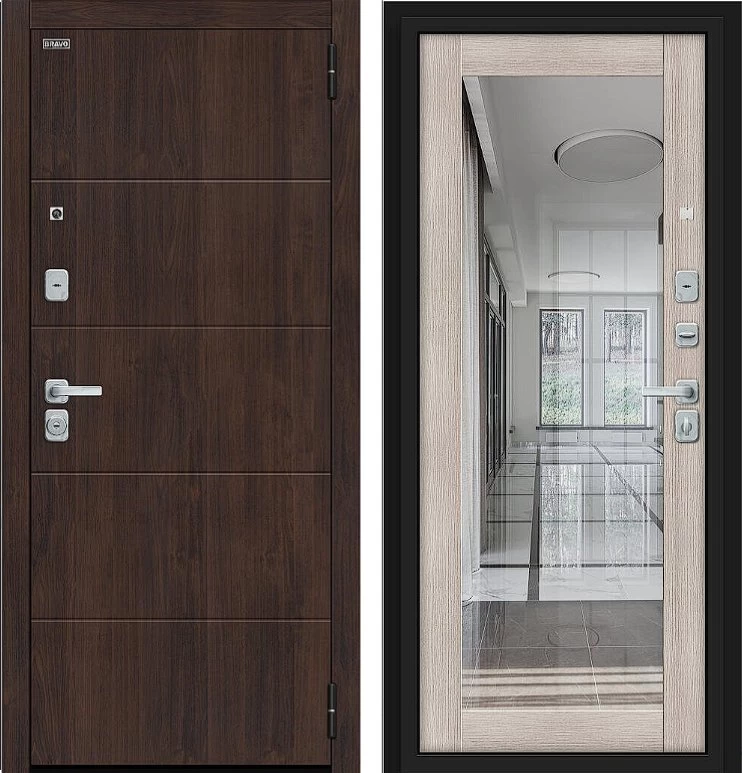 Надежная входная Дверь Браво Флэт/BChrome Almon/Cappuccino Melinga премиум класса по цене 42 960 руб. Большая толщина стали защитит от проникновения в ваш дом, квартиру или коттедж. Используется очень качественная фурнитура: замки, цилиндры, ручки, защелки. Покрытие и отделка двери изготовлено под внимательным контролем производителя. Дверь имеет долгий срок службы и гарантию.